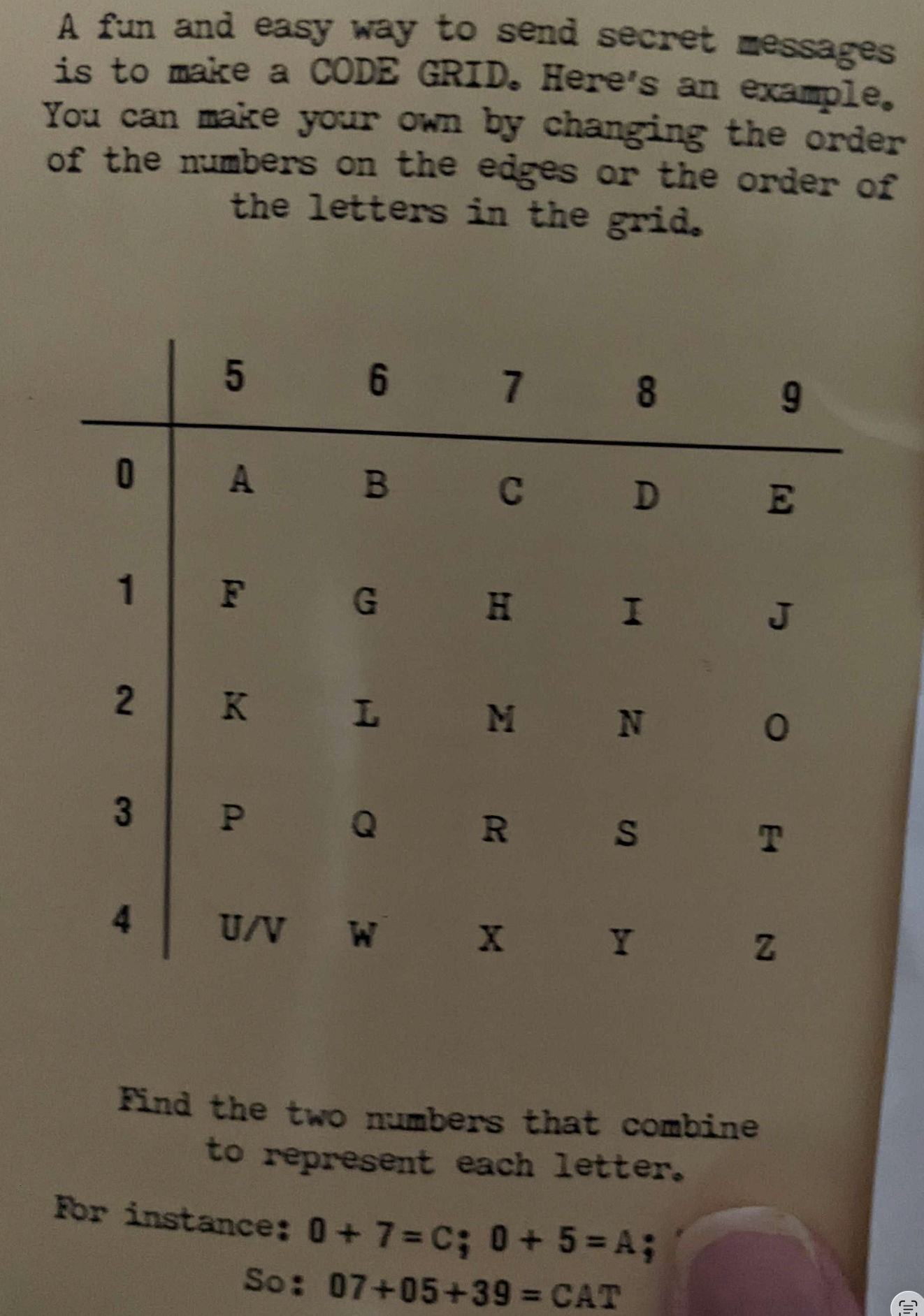 Numbers to Decode (e.g. 070539)